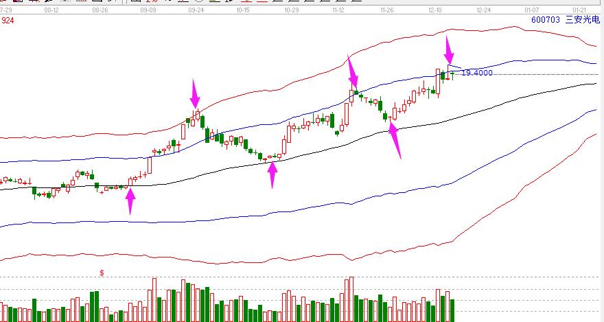 我們看圖形,可以很清晰看到,當三安光電從下往上突破站位生命線位置,打破平衡從弱勢進入強勢,就是新的買點位置,或是從極陽衰退,回調至生命線附近,同樣是一波上漲的啟動位置。