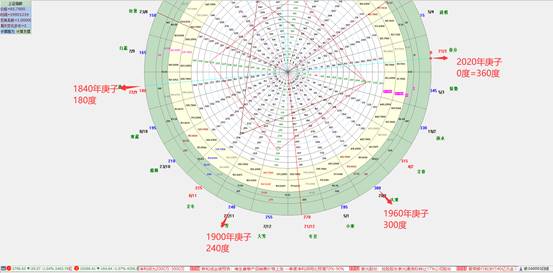 贏家江恩輪中輪,我們以2020年庚子年為0度,一年一度往前推看歷史發(fā)生了什么,60年一個(gè)花甲。【江恩輪與易經(jīng)的淵源】