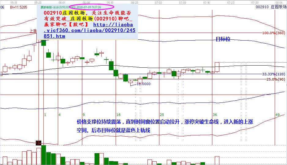 莊園牧場(chǎng):9號(hào)依據(jù)時(shí)價(jià)共振選出,在百分比33.33%和生命線(xiàn)區(qū)間震蕩,截止目前漲幅在12%左右。今天漲停向上突破生命線(xiàn)進(jìn)入新的上漲空間,后市上漲目標(biāo)位就是極反通道藍(lán)色上軌線(xiàn)位置。