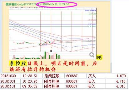 第二波:剛泰控股向上突破生命線位置,然后圍繞生命線震蕩,符合生命線最佳買點,再做時間周期分析,1號為等距時間變盤點,即將發生趨勢反轉,時間和生命線共振,因此在31號贏家江恩群中做提示:1號時間窗,即將再次拉升。用戶在30號、31號、1號分別再次買進剛泰控股在1號收大陽線,2號再拉升,累計獲利15%左右。