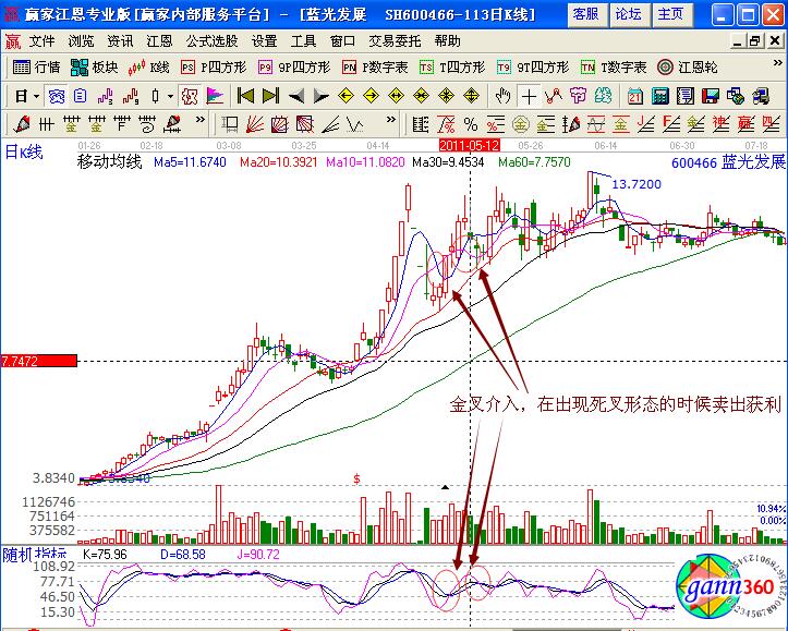 從圖中可以看出,在5月3日的時候,5日均線和10日均線形成的是金叉買入的信號,而且股價以20日均線作為上漲的支撐線,在結合kdj指標中形成的金叉買入信號,是一個很好的短線買入信號,投資者可以在該位置介入操作。