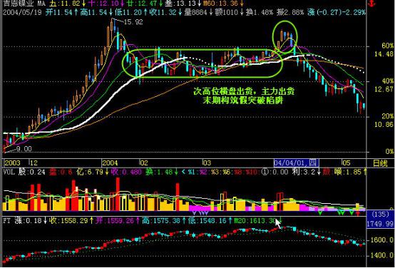 如上圖所示主力在次高位橫盤出貨,在出貨的末期再構筑出假突破的陷阱。圖片是假,誘多是真!