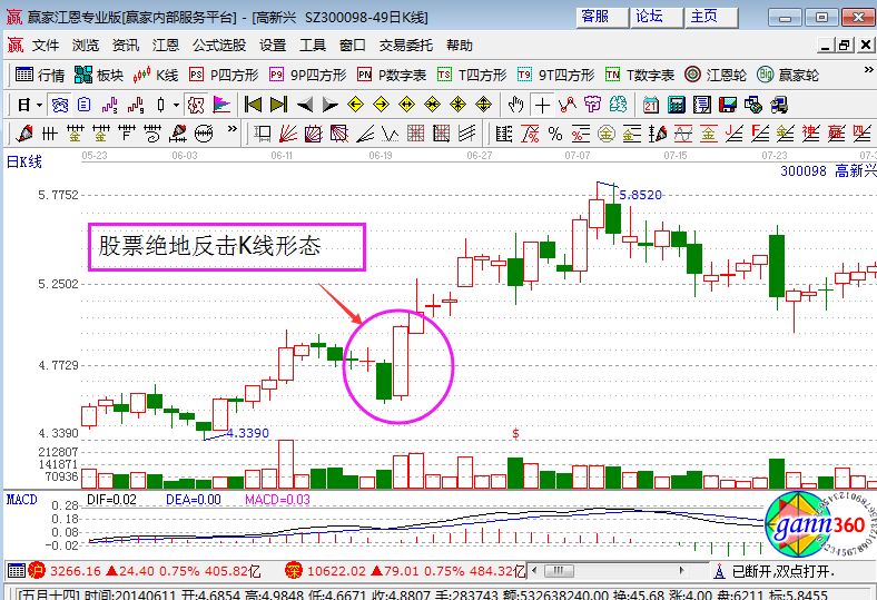 股價前期走勢一直震蕩下跌,嚴重超跌型,下跌的很突然,股價極低,后來突然股價大幅拉升上漲,成交量也不斷增多,后市股價不斷創新高,就像被用力向下擲的皮球遇到地面突然強勁反彈一樣,這種形態的K線圖被稱之為絕地反擊。