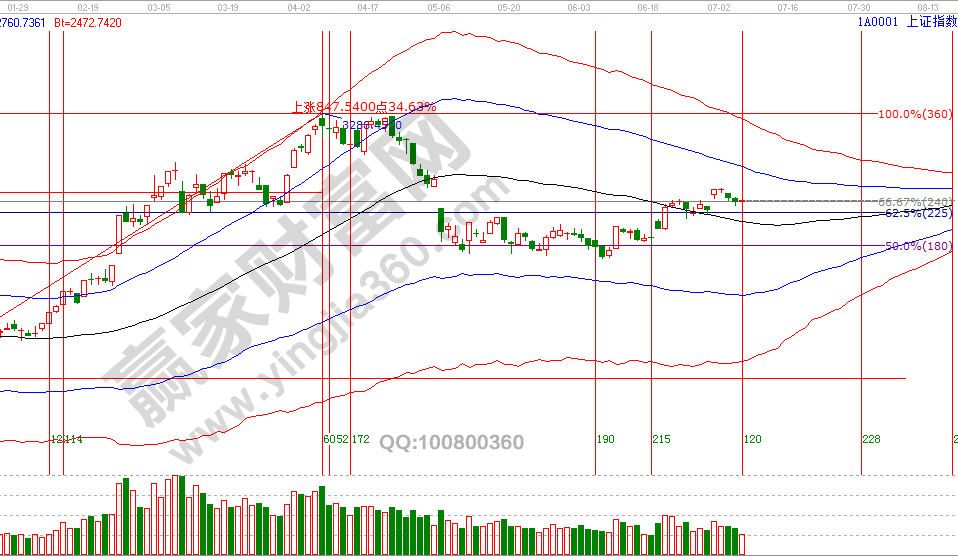 了解如何判斷未來(lái)的市場(chǎng)運(yùn)行,最快的方法就是研究歷史。2號(hào)依據(jù)贏家江恩系統(tǒng)工具所提出的周期共振警示信號(hào),并給出回探期具有參考價(jià)值的位置是60分鐘生命線,經(jīng)過(guò)3天時(shí)間市場(chǎng)再一次驗(yàn)證了極反通道周期推導(dǎo)的實(shí)戰(zhàn)性,此方法應(yīng)用在學(xué)員區(qū)有過(guò)講解。指數(shù)觸及至短期關(guān)鍵位后出現(xiàn)止跌,強(qiáng)度不佳,但午盤(pán)點(diǎn)評(píng)中談到輕倉(cāng)或空倉(cāng)者午盤(pán)可以試探性參與,一切遵守方法信號(hào)、用紀(jì)律規(guī)則交易,這是同普通散戶(hù)巨大差別。本周參考位支撐是2944、2978點(diǎn),壓力是3051、3074點(diǎn),7月8號(hào)盤(pán)中壓力是45度3016點(diǎn)、90度3036點(diǎn),盤(pán)中支撐是315度2978點(diǎn),10號(hào)為土星沖日。操作策略,指數(shù)極反通道生命線上安全區(qū)域震蕩上攻,反彈動(dòng)作還未結(jié)束,今日博弈籌碼以短期關(guān)鍵位做決策,整體持倉(cāng)保持3-5成。