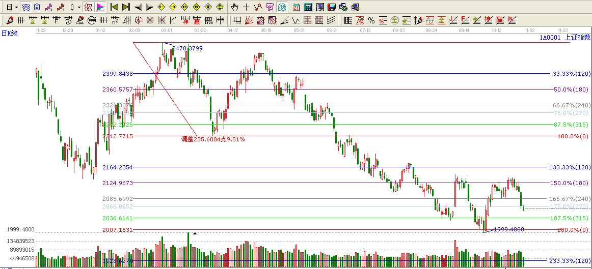 ☆依據(jù)贏家江恩系統(tǒng)工具——極反通道提示:大盤周五跌破極反通道生命線2088點(diǎn),趨勢(shì)轉(zhuǎn)弱,不可操作。