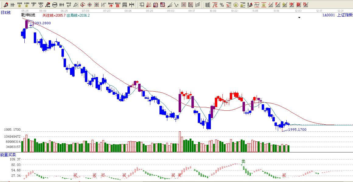 ☆依據贏家江恩系統乾坤k線提示:大盤還是處于藍色區域,看空信號。
