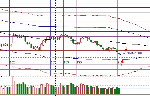 A股生命線下弱勢通道運行,當前K線處在懸空位置,短周期跌至弱勢外軌線,盤面將轉換為弱勢盤整,盤中反抽有望出現高度有限,無技術執行力差者不建議搶盤中反彈,重倉者個股破位以減倉為主,支撐1956-1962阻力1980-1985,今日為本周最后一個時間點;