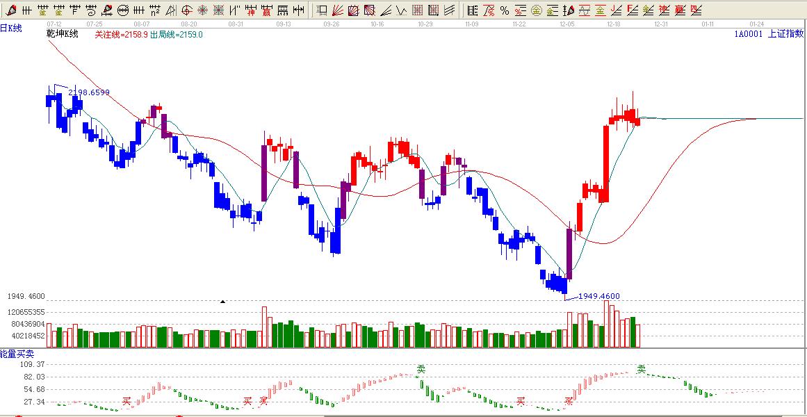 ☆依據(jù)贏家江恩系統(tǒng)能量買賣提示:能量買賣多空臨界點,發(fā)出賣的信號看空。