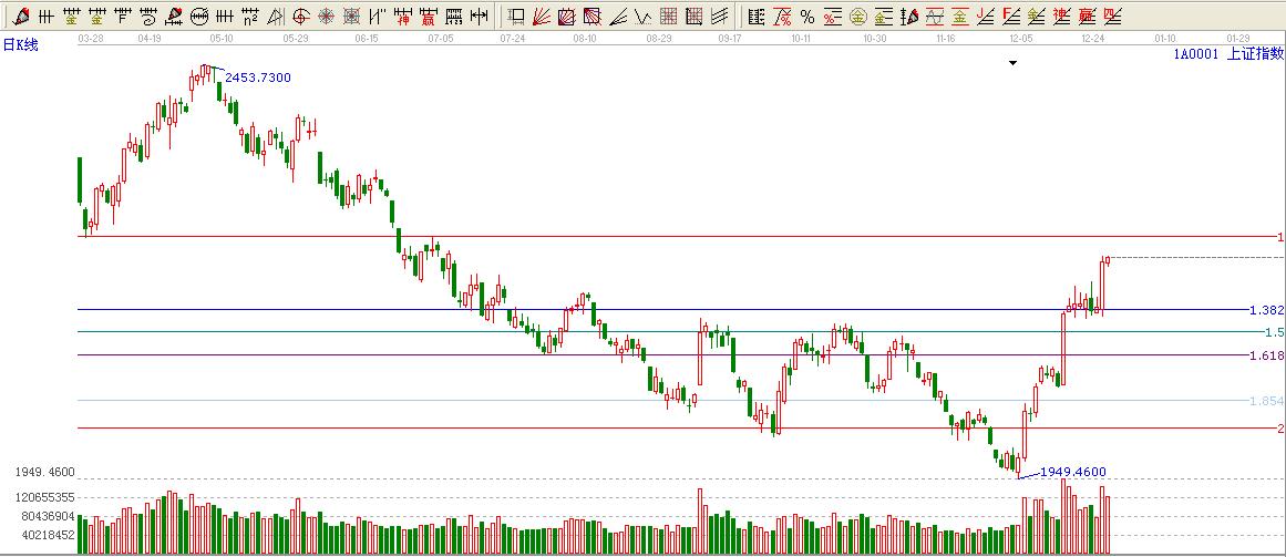 ★依據贏家江恩黃金價格延伸線提示:大盤依然在1.382位置上方,看多。上方0度位置壓力2250附近。