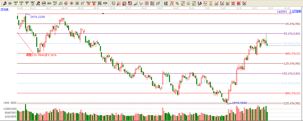 ★依據贏家乾坤K線提示:1月25日大盤跌破贏家乾坤K線出局線,謹慎看多。