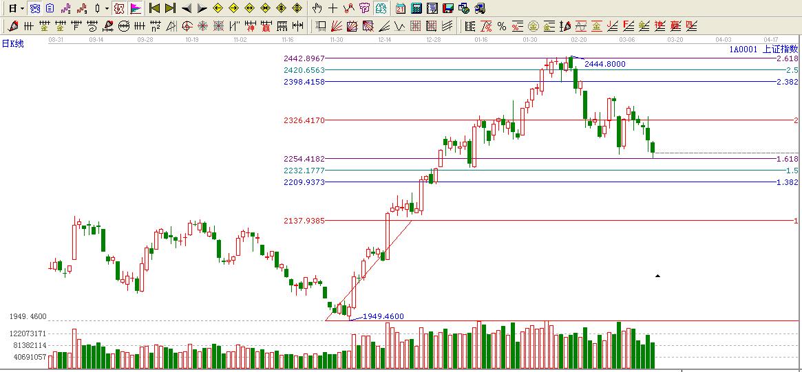 ★依據贏黃金價格延伸線提示:大盤處于黃金分割延伸1.618位置2252點這里不破看高一線至2倍位置2325點附近