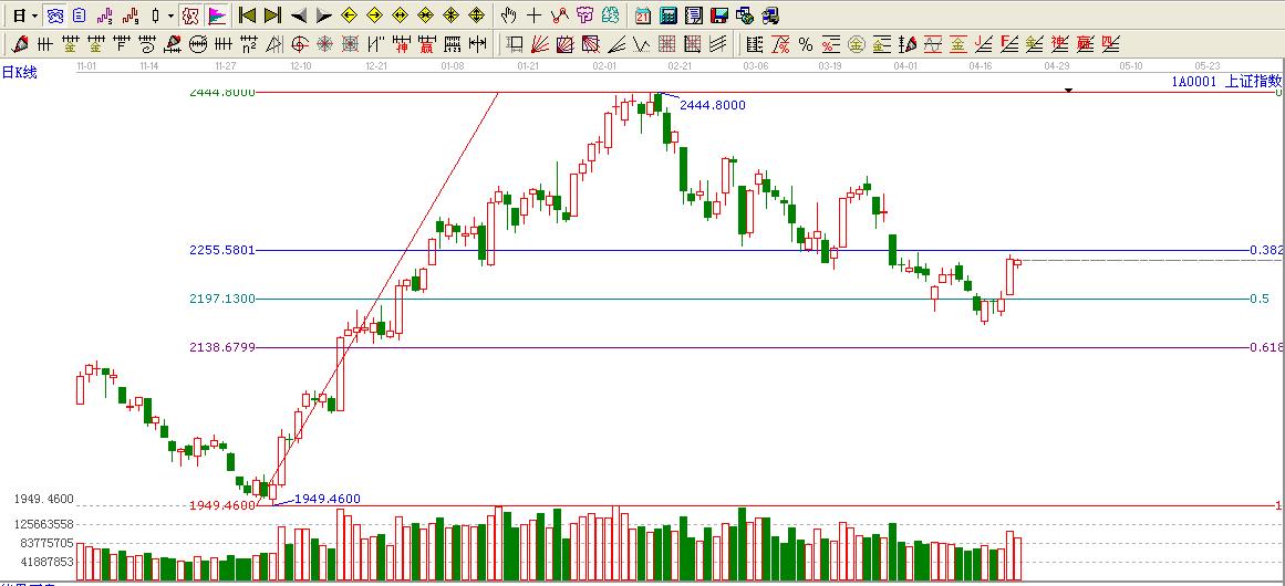 ☆依據黃金價格回調支撐位提示:0.382位置2255.58點構成短期壓力,大盤蓄勢后有望觸摸0.382位置。
