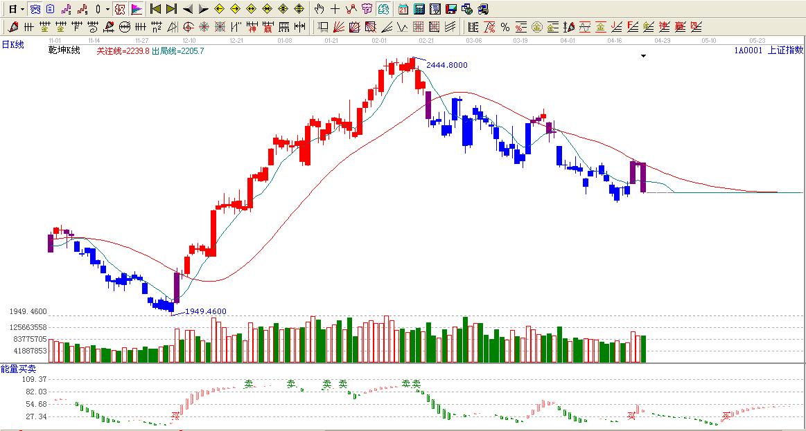 ★依據贏家乾坤k線提示:大盤受阻關注線壓制,下跌,不過目前依然處于紫色區域,不以盲目過分看空。