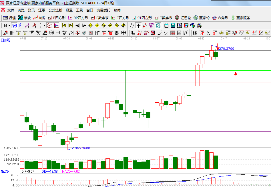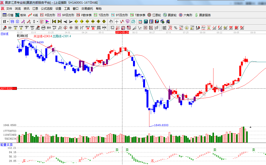 ☆依據贏家江恩系統波段百分比延伸提示:2255點是百分比240度位置受阻回落,短期調整目標位是315度2197位置;(2)