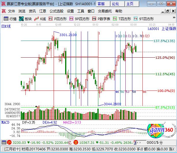 周四大盤高開低走呈現中陰下跌0.52%,幾大指數全線下跌,創業板下跌0.6%。板塊普跌,釀酒勉強收紅,銀行和有色微跌,保險領跌權重;題材方面,草甘膦、次新領漲,快遞、一帶一路、央企改革領跌,個股下跌居多。技術方面,自滬指運行至極反通道外軌線,早盤分析中提出按工具規則此位置應將高收益個股獲利了結,此線一舉突破的概率較小,因此震蕩回落將是主基調,而下方的空間也是可預見的,江恩百分比90度、生命線位置一目了然,因此波段減倉的籌碼只需等待價位到達后擇機回補即可,3213、3204為日內支撐,3241、3255為日內阻力,僅供參考,不構成任何投資建議。