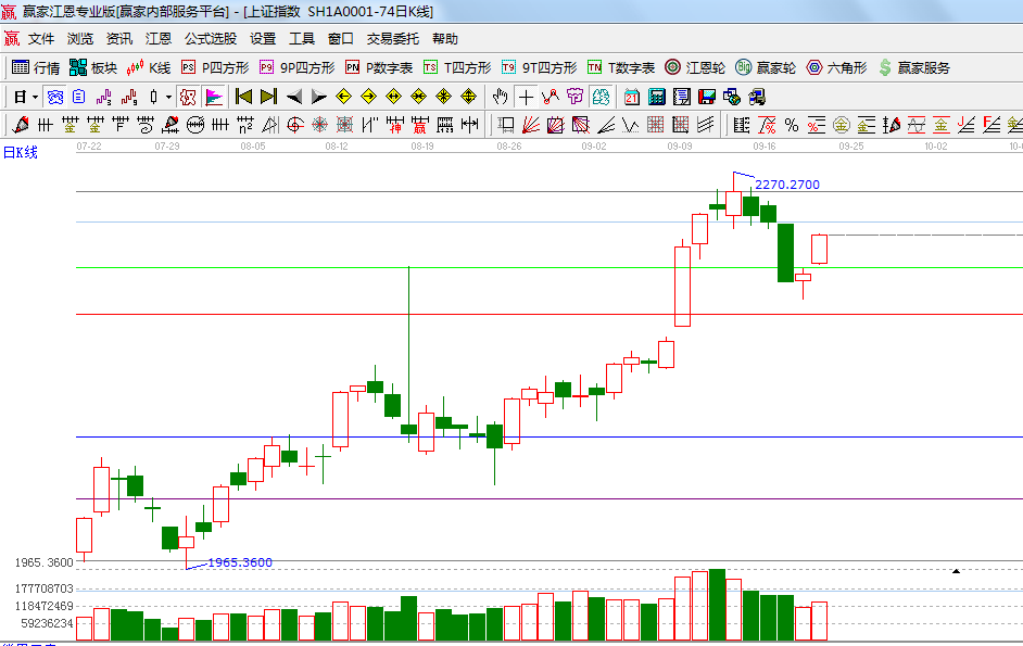 ☆依據贏家江恩系統波段百分比延伸提示:315度2196位置是是支撐,270度位置是2233;(2)