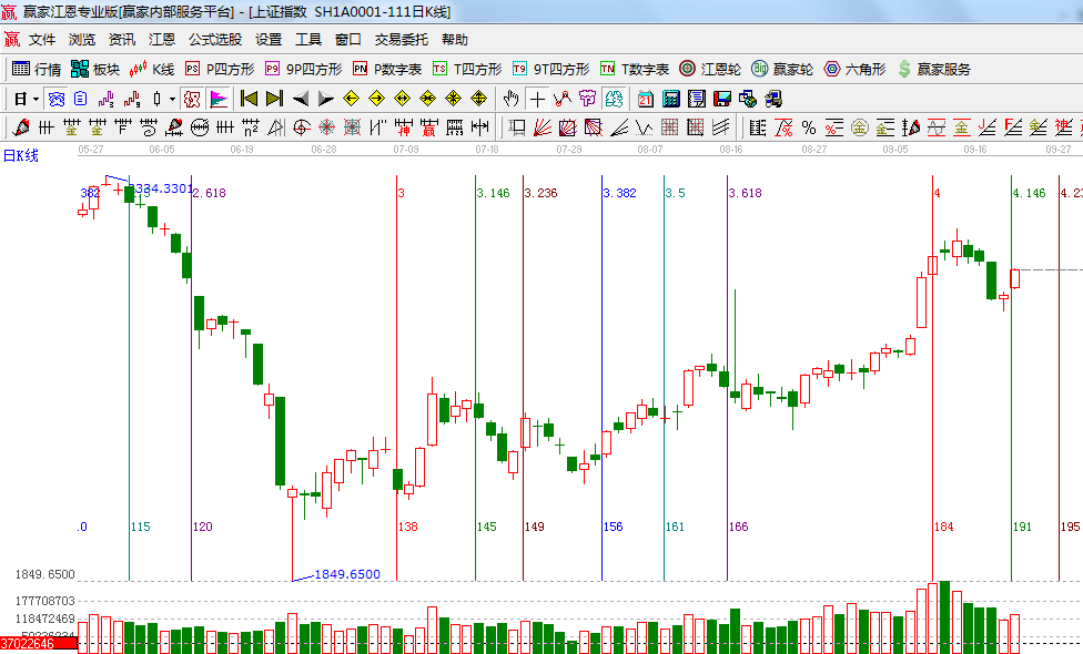 ★依據贏家江恩系統乾坤K線提示:K線反抽短期出局線,明日展開爭奪戰;(1)