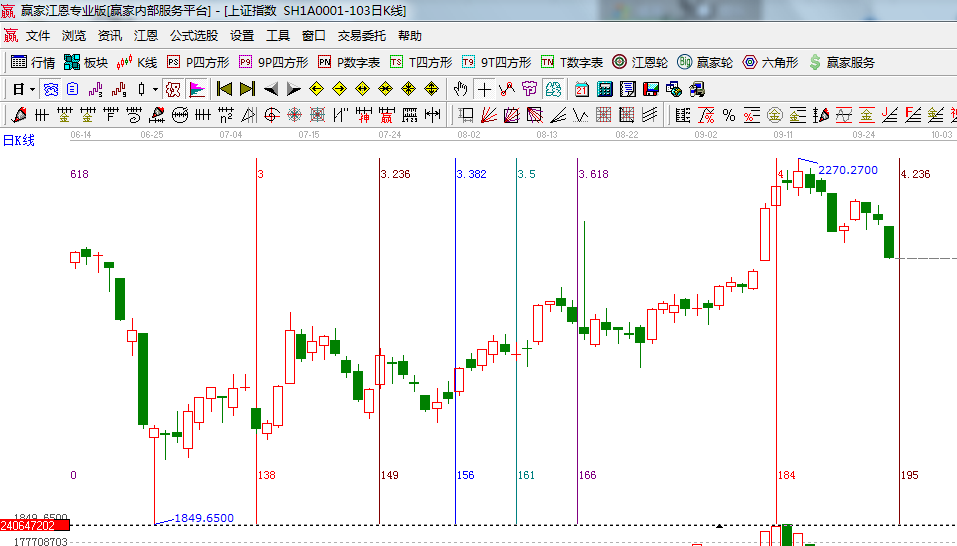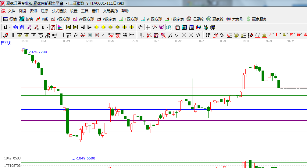 咨詢:13333833889研究歷史預(yù)測未來是江恩理論代名詞,贏家江恩系統(tǒng)則是依據(jù)江恩理論的核心理論自然規(guī)律而研發(fā),一直以來直觀的通過工具理性的分析判斷指數(shù)、個股的走勢,近期指數(shù)的走勢一步步的在安著分析預(yù)判的運(yùn)行,如昨天分析所談到60分鐘生命線2195的失守將展開日線的正式調(diào)整,市場今天破位后出現(xiàn)快速下跌,這種格局要持續(xù)到節(jié)后的一周左右的時間里才會有所緩解,因此操作上放慢節(jié)奏,權(quán)重股的調(diào)整將指數(shù)帶動下來,為后期上攻拉空間,虧損過多的個股不需要出局,做出減倉尋找機(jī)會補(bǔ)倉;假期前還有兩個交易日,假期效應(yīng)會再現(xiàn);