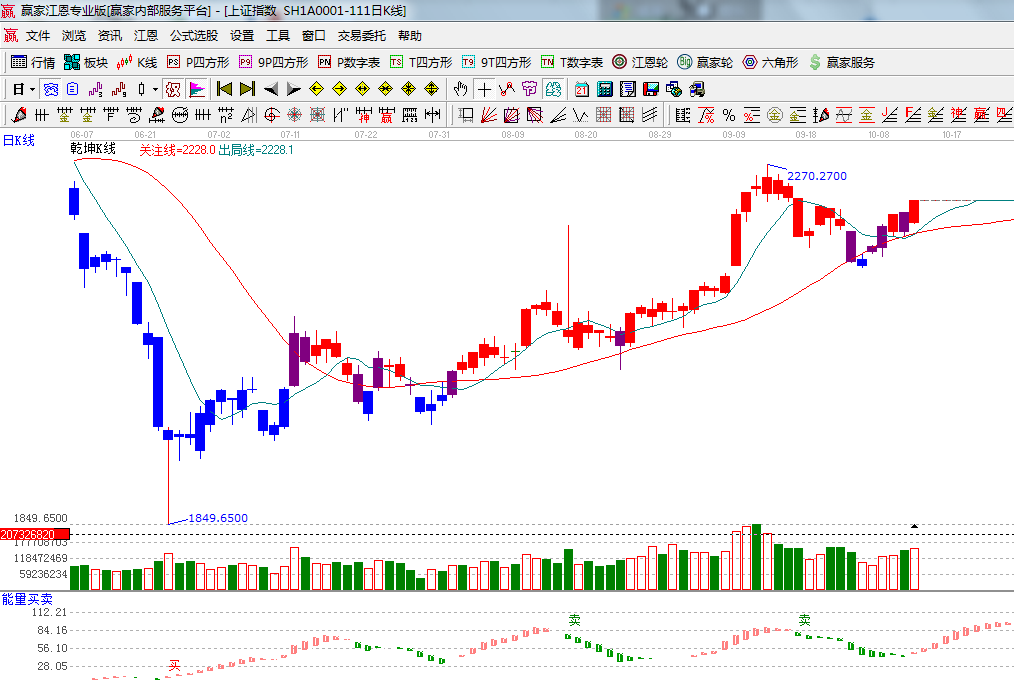 ★依據(jù)贏家江恩系統(tǒng)能量買(mǎi)賣(mài)提示:出現(xiàn)第一根紅色柱子,謹(jǐn)慎看多;
