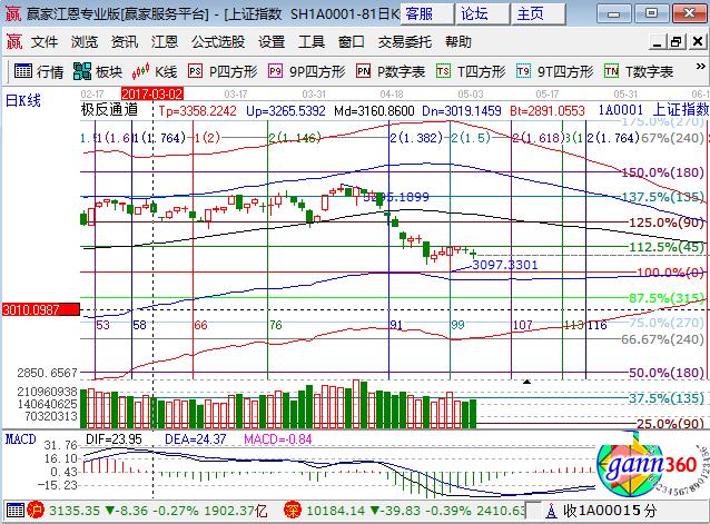 大盤周三低開沖高回落小跌0.27%,幾大指數(shù)全線下路,創(chuàng)業(yè)板跌幅最大,主要原因是權(quán)重繼續(xù)萎靡不振。板塊方面,環(huán)保、鋼鐵、電力板塊領(lǐng)跌;熱點(diǎn)題材方面,新疆本地股、次新和高送轉(zhuǎn)領(lǐng)漲,雄安概念領(lǐng)跌,個(gè)股漲跌互現(xiàn),成交量較前日略微放大。技術(shù)方面,短周期15、30分鐘失守生命線進(jìn)入弱勢(shì)區(qū)域,日線保持前期觀點(diǎn),在江恩百分比零度和90度為箱體下沿和上沿區(qū)間震蕩,熱點(diǎn)的不可持續(xù)性成為制約反彈主要因素,倉(cāng)位保持在5成左右,3成為波段,2成為短線,3116、3100為日內(nèi)支撐,3154、3164為日內(nèi)阻力,僅供參考,不構(gòu)成任何投資建議。