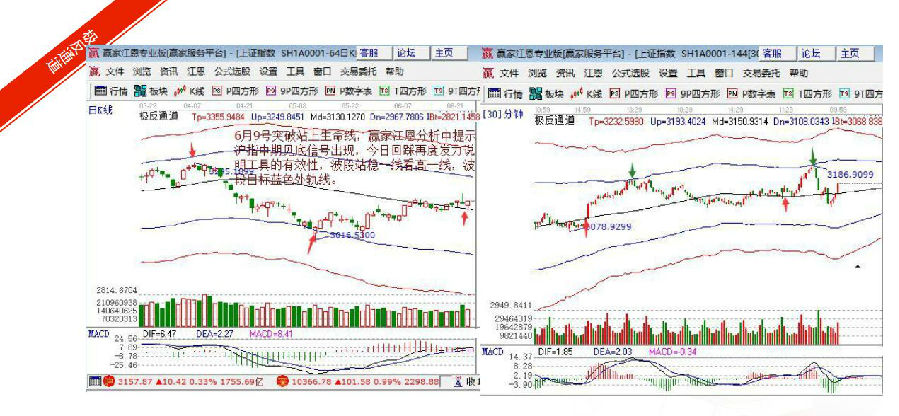贏家江恩點評:極反通道工具可幫助用戶解決大盤或個股趨勢判斷、價格買賣點,在日內差價高拋低吸方面更能提示其優勢。下圖就是贏家江恩股票軟件的極反通道截圖。