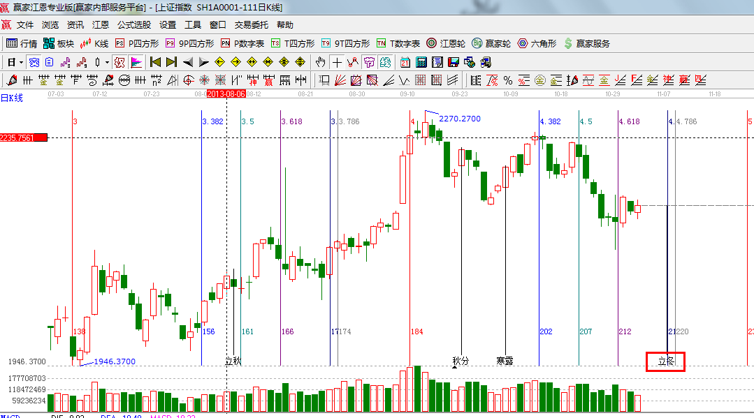 ★依據贏家江恩系統黃金時間周期線提示:7號、8號為日線時間窗,同時24節氣立冬是7號;