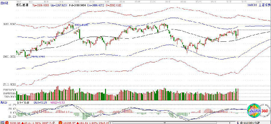 今日滬深兩市股指集體小幅低開(kāi),隨后全天一路強(qiáng)勢(shì)走高,沒(méi)有任何的回調(diào)走勢(shì)出現(xiàn),創(chuàng)出此番行情以來(lái)的新高。創(chuàng)業(yè)板早盤(pán)雖然走勢(shì)較弱,但在滬指的帶動(dòng)下,同樣進(jìn)入拉升模式。煤炭、有色、券商、鋼鐵、石油礦業(yè)等權(quán)重板塊集體暴漲,漲幅均超過(guò)3%。