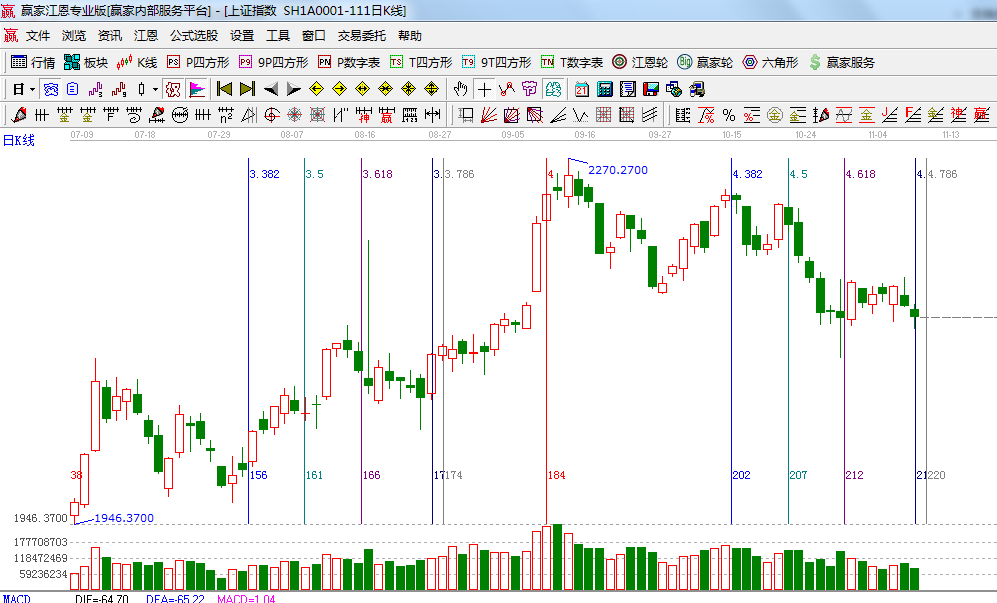 ☆依據贏家江恩系統能量買賣提示:多空轉換節點位置,等待信號的確認;