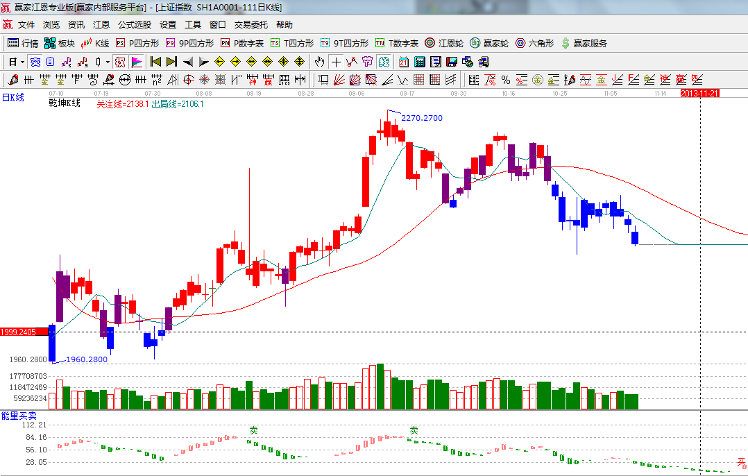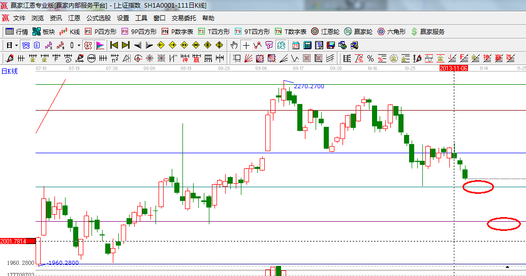 指數遇到黃金分割周期線所分析的時間窗后選擇下行,十幾天的縮量橫盤小平臺宣告失敗,那么價格上通過極反通道與江恩百分比得出在2050附近,本周日線的時間窗是13號,整體趨勢、均線系統、MACD指標都在弱勢區域,操作思路上則以空倉休息或輕倉持股為主,操作時所挑選品種圍繞改革涉及到的行業為主或有事件推動因素的概念股;