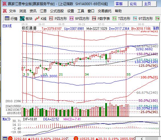 周二大盤高開高走再創近期新高直奔3300點,漂亮50帶動滬指上攻,創業板尾盤回升,幾大指數均小漲。板塊方面,保險、石油、券商和銀行等權重漲幅居前,煤炭、有色和鋼鐵領跌;題材方面,雄安概念領漲,鋰電和部分化工漲價概念表現,鈦金屬、稀土永磁和石墨烯下跌,個股漲跌互現成交量較前日略有萎縮。技術方面,滬指日線強攻收盤站上江恩百分比240度(3287點)和極反通道外軌線3288點上,依據工具規則,進入強勢通道后震蕩幅度會加大,處于低位的創業板或將迎來短線操作機會,策略保持波段、短線配合操作,倉位保持在5成,3282、3274為日內支撐,3301、3308為日內阻力,僅供參考,不構成任何投資建議。