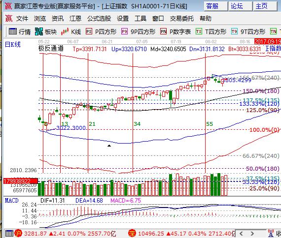 大盤周二低開震蕩微漲收小陽線,滬指大部分時間處于綠盤運行,尾盤在創業板帶動下收紅,深市走勢強勁,創業板指大漲1.73%。板塊方面,大金融輪番上攻,石油、鋼鐵、煤炭和化工股下跌;題材方面,豬肉領漲并帶動農業板塊走強,人工智能、互聯網金融和網游科技題材漲幅居前,雄安部分股活躍,個股漲跌互現,成交量較前日有所放大。技術方面,滬指日線江恩百分比240度3288點為盤中反抽阻力,同時極反通道外軌線是3300點,短周期60分鐘回踩生命線企穩,向上空間看日線阻力帶,下方60分鐘生命線3261為盤中支撐,倉位控制在5成以內,3261、3250為日內支撐,3288、3300為日內壓力。僅供參考,不構成任何投資建議。