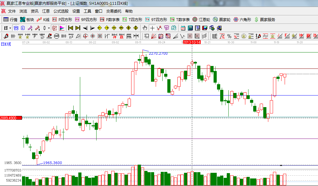 受權重股銀行、地產、保險板塊下跌帶動滬深指數回踩極反通道生命線2175附近,午盤銀行股回升跌幅收窄,2200點前期有套牢籌碼主力有清洗意圖, 盤面上連續上漲的概念如軍工 網絡安全、二胎出現大幅回調,從技術形態上分析這部分個股后勢有機會繼續上行,漲幅居前的行業是4G、煤炭,4G牌照年前有望發放刺激相應個股;時間周期分析明日22號是黃金分割的零度位置,量能將決定市場的動能;