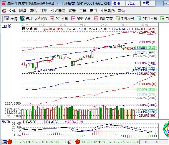 上周五滬市低開震蕩縮量小跌收長下影,深成指和中小創均有不同下跌,但跌幅相對較小。板塊方面,家電、保險、銀行和釀酒等板塊逆市上漲,有色、鋼鐵和化工領跌;題材方面,5G和次新表現強勢,軟件、石墨烯、互聯網金融和雄安表現較弱,芯片、新能源汽車上漲分化,個股跌多漲少成交量萎縮。技術方面,滬指日K線逐漸向極反通道生命線靠攏,下方缺口僅剩3個點未回補,長遠看回補缺口回踩生命線對未來上漲不留下心理隱患,短周期15、30、60在生命線下弱勢運行,120分鐘按預期回踩,江恩百分比270度是3325點,基本于日線極反通道生命線在同一區域,本周是國慶長假最后一個交易周,資金會相對規避,如周中有下探從中長線角度則是回補9月初減倉籌碼的機會,波段倉位控制在4成,短線倉2成,3345、3330為日內支撐,3365、3370為日內壓力。僅供參考,不構成任何投資建議。