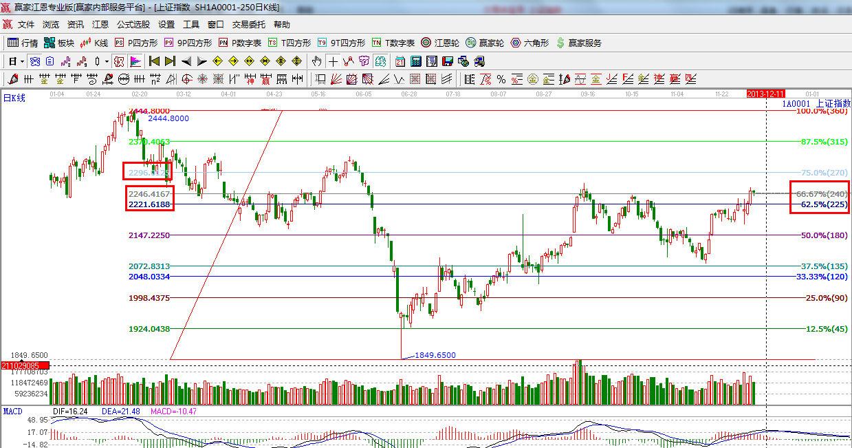 ☆依據贏家江恩系統波段百分比提示:62.5%與66.67%形成震蕩帶,此區間以上則短線、波段持股,跌破則減倉;