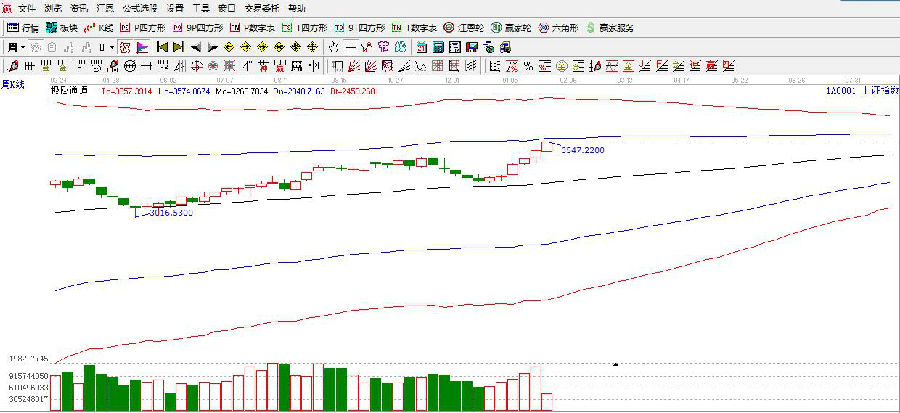 江恩看盤綜述:依據贏家江恩技術工具分析得出:周二,滬指在極反通道藍色線之上強勢區域運行,在金融地產持續推動下再創新高,其背后邏輯依然是業績以及低估值標的,元旦節后的這波反彈確實大大超出預期,短期經過連續的上攻后,需要重點關注周線極反通道藍色線3573的位置,中期趨勢繼續看好。短期謹防短期過快上行所迎來的整理。操作上,繼續關注業績以及低估值標的。另外,短線可適當關注部分低位創藍籌的機會。