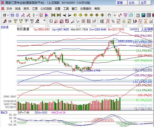 周二大盤低開低走放量大跌3.35%,深成指和中小板跌幅均在4%以上創近半年多新低。板塊普跌,銀行、釀酒、電力及保險跌幅相對較小,石油、券商、地產領跌權重;次新、芯片、人工智能、軟件領跌題材,兩市僅108家收紅,跌停家數近500家,上千只跌幅8%以上。技術方面,滬指收盤微破日線生命線,此線是波段強弱的分界線,多空雙方會對此線進行激烈爭奪,短周期15、30、60分鐘均在弱勢外軌線附近,背離級別周期擴大。江恩百分比空間分析,2倍零度位置3420成為阻力,270度3321是下方支撐,生命線為爭奪線。創業板創3年新低,以周、月對中小板指的時間分析,近期產生的低點參考意義非常值得注意。操作上波段穩健者可以休息,待短期趨勢明確后在做布局。中長線倉位4成持股不動,3360、3350為日內支撐,3400、3425為日內壓力。僅供參考,不構成任何投資建議。