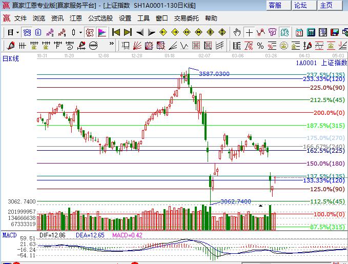 周二A股三大指數高開延續強勢反攻,貿易戰緩和外盤市場也有所企穩,深市及創業板繼續領漲市場,貿易戰再度驚醒了國人科技興國才是王道,也符合持續關注創業板的邏輯,市場風險判斷暫時以創業板為主。板塊方面,權重僅券商跑贏大盤,銀行、家電、保險和釀酒等逆市下跌。題材全線上漲,國產軟件、云計算、移動支付、芯片、5G、次新和軍工等領漲。技術方面,昨日盤中沖高回落尾盤收復,略顯連續二天反彈后獲利盤回吐。隔夜外盤漲跌不一,大盤有望圍繞百分比120度與135度3157-3176震蕩,短周期15分鐘生命線上下震蕩不破,時間窗未到達前有延續確認30分鐘生命線的概率;創業板短周期15分鐘遇外軌線壓力,下降趨勢線位置是1760附近,指數一舉突破的概率不大,有逐級回踩確認的需求;上證50再次確認180度2737支撐,從相關標的股走勢來看,短期轉強的概率不高,不做為主要跟隨品種,待4月上旬再觀察其走勢。操作策略,跟隨贏家江恩系統信號提示參與的籌碼,經過持續兩天的上攻后已有收益,后半周獲利回吐壓力較大,應見好就收,一直觀望的投資者不易放大倉位入場追高,應等待時機或潛伏低位反彈不充分的個股。。今日支撐3157、3146,今日阻力3189、3200,僅供參考,不構成任何投資建議。
