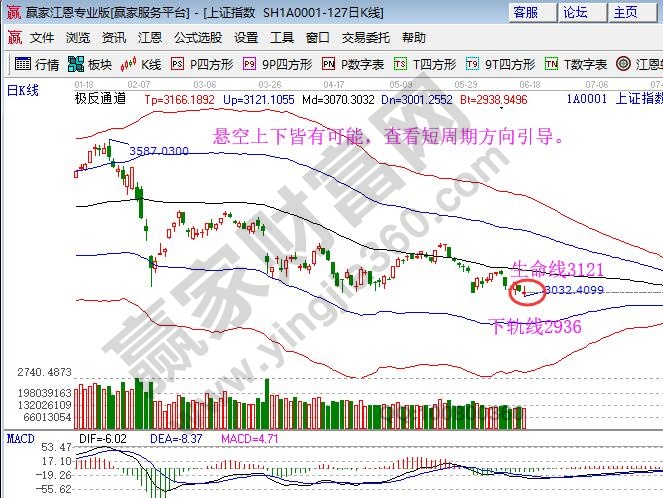 ☆依據贏家江恩理論系統極反通道提示:大盤多周期K線處于生命線下弱勢區域,短周期K線與極反通道生命線與弱勢下軌線都有距離,對于上下皆有空間的位置,特別是處于弱勢區域不操作為好,線下弱勢休息為主。