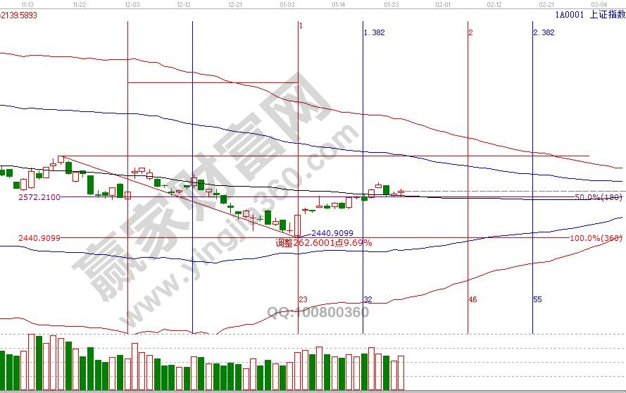 大盤延續圍繞黑色生命線2578點震蕩,從時間與量能配合上判斷,橫盤震蕩轉強的信號增強,出現放量陽線預示市場將震蕩上行,按規則站穩一線看高一線,2440點反彈第二個目標是藍色上軌線2670附近。空間方面,江恩四方形提示,25號支撐是2579點,2607、2635點是盤中阻力,下個時間窗口是下周二29號。操作策略,大盤日線生命線上震蕩逐漸轉強,線上重個股輕大盤,倉位保持在3-5成。
