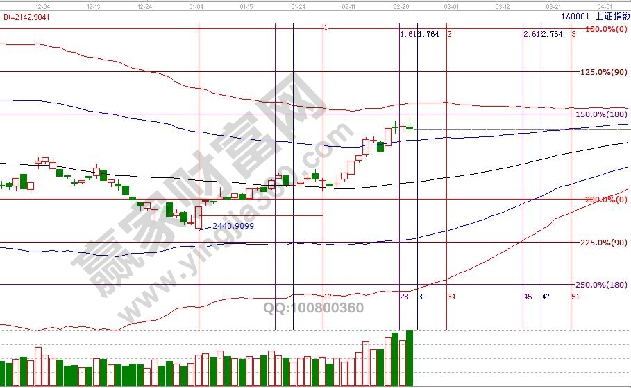 大盤自18號(hào)放量確認(rèn)極反通道藍(lán)色上軌線支撐后,周四盤中反攻紅色外軌線,研究歷史數(shù)據(jù)得出,超強(qiáng)通道市場波幅將擴(kuò)大,市場走勢(shì)也在一步步確認(rèn)判斷,后續(xù)個(gè)股操作難度將逐漸加大,操作思路及應(yīng)對(duì)可收聽本周六上午10點(diǎn)贏家江恩公開課。未來幾天穩(wěn)健者關(guān)注15分鐘生命線,激進(jìn)者關(guān)注60分鐘生命線,這兩條線影響著操節(jié)奏及概率。空間點(diǎn)位上,22號(hào)支撐2730點(diǎn),2775點(diǎn)為壓力,時(shí)間窗口是28號(hào)。操作策略,大盤日K線從強(qiáng)勢(shì)通道進(jìn)入超強(qiáng)通道,個(gè)股波動(dòng)空間增大,分批高拋藍(lán)色上軌線或紅色外軌線壓力個(gè)股,倉位切換至生命線附近有量能配合的股,整體倉位保持在5-6成。