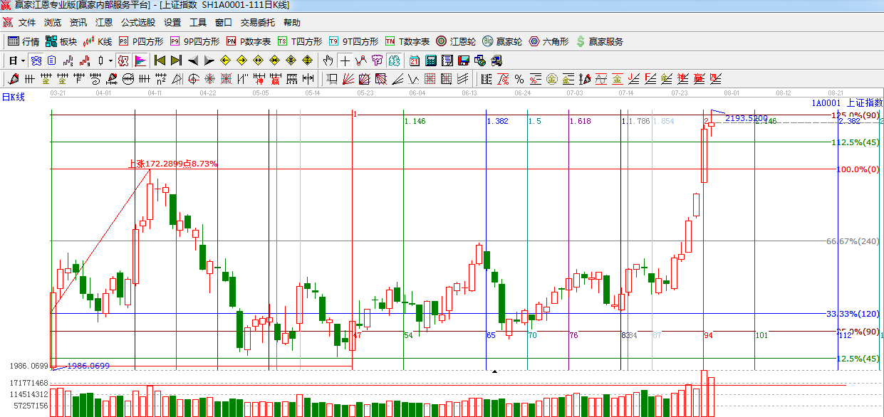 ☆依據贏家江恩系統黃金時間周期線提示:7月28日是前期提到的時間窗口,短期下一時間窗口是8月06日