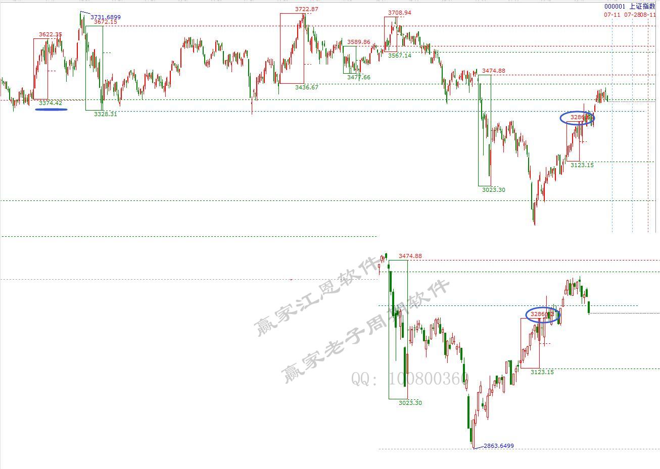 三、預測跌破3374點,直接回調3286。圖形今日正在朝著工具信號走。