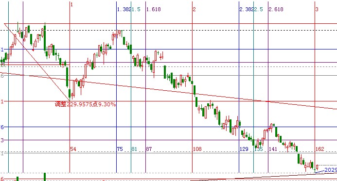 站在技術的角度分析通過贏家江恩黃金分割時間工具做圖,以2012.01.06到2012.3.29號做圖如下,9.5號是時間點的3倍,價格角度上做分析2478至2242做圖如下,2012點是下行的一倍位置;整體上此區域值得博弈;